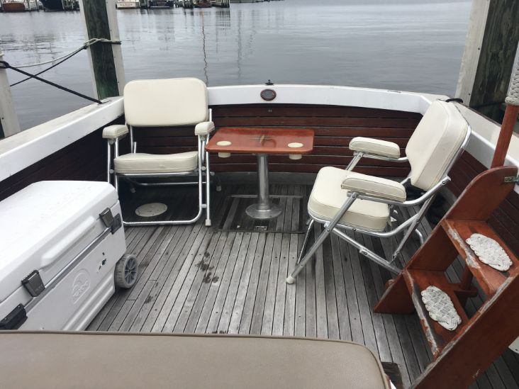 Johnson Brothers skiff with a brand new V8 mercruiser engine with under 100 hours. New controls, wiring harness and helm station. This boat is perfect for the bay and needs a cosmetic restoration.